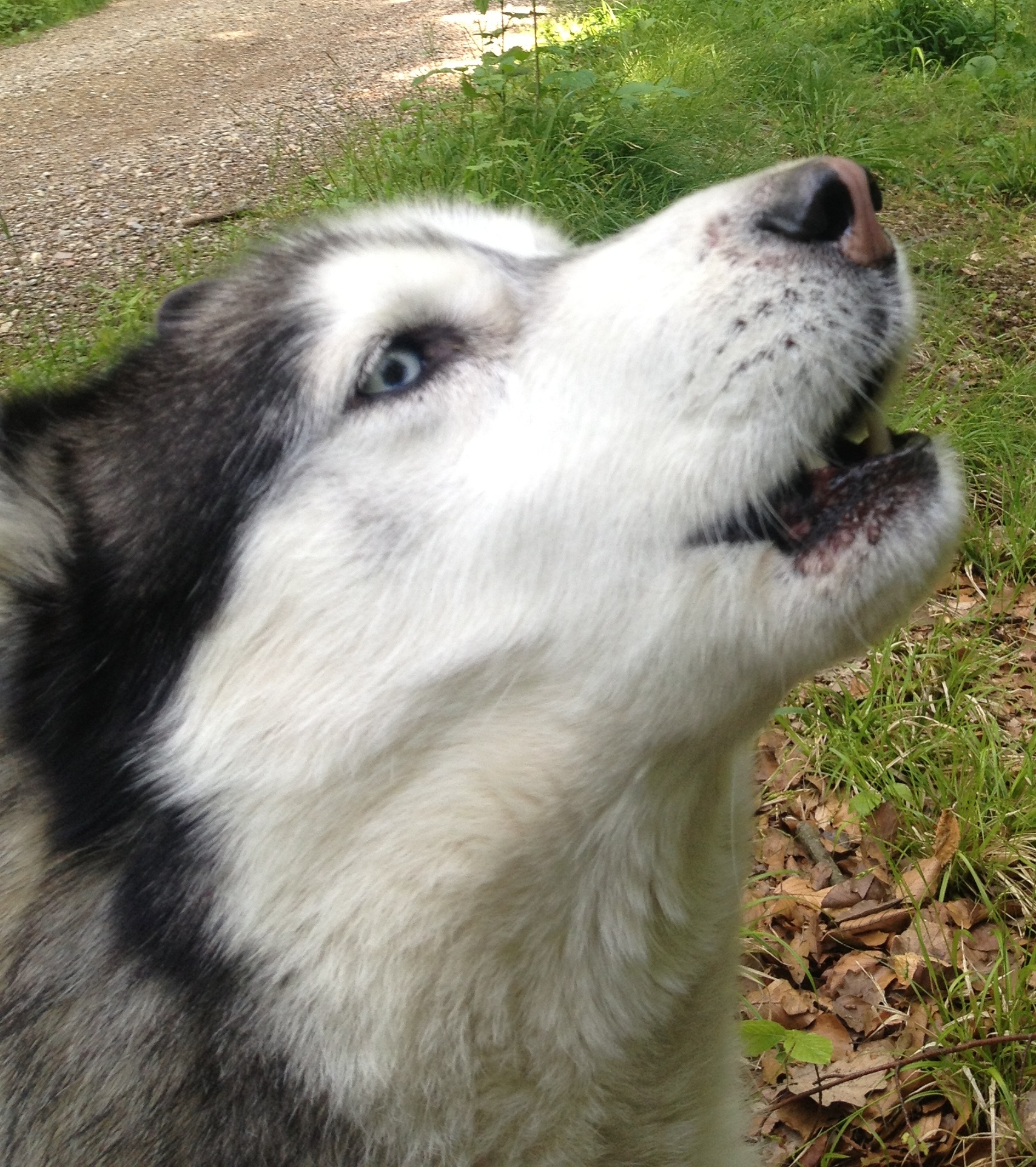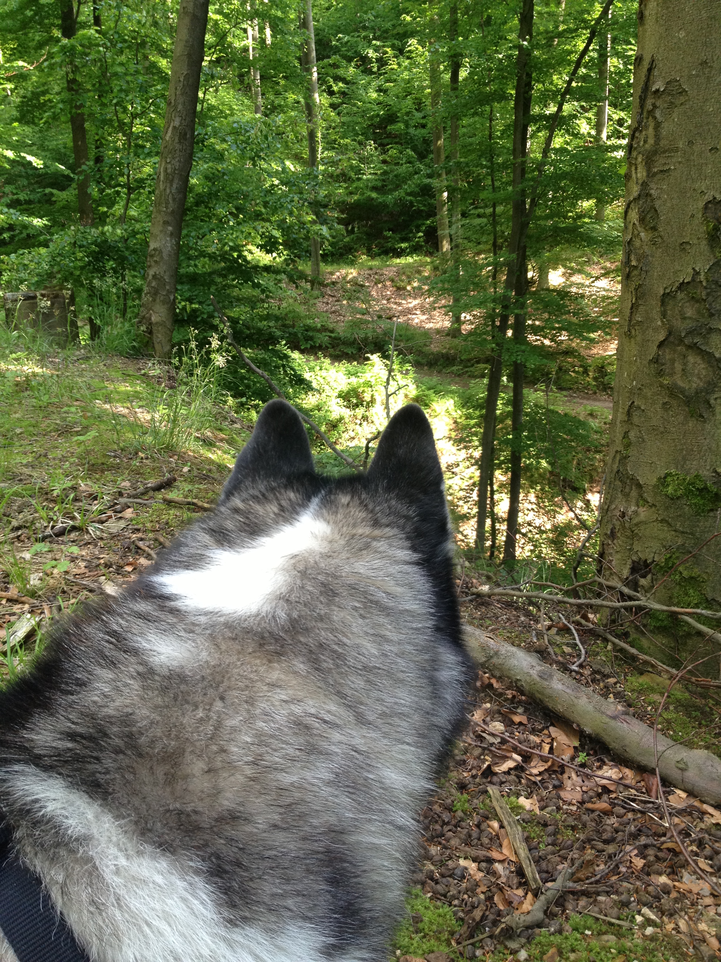 Als ich meine kleine Zigarettenpause für beendet erklärte fand Husky Luke es toll mich noch zum Heulen aufzufordern. Es muss ja jeder wissen das wir beiden hübschen hier im Wald unterwegs sind.