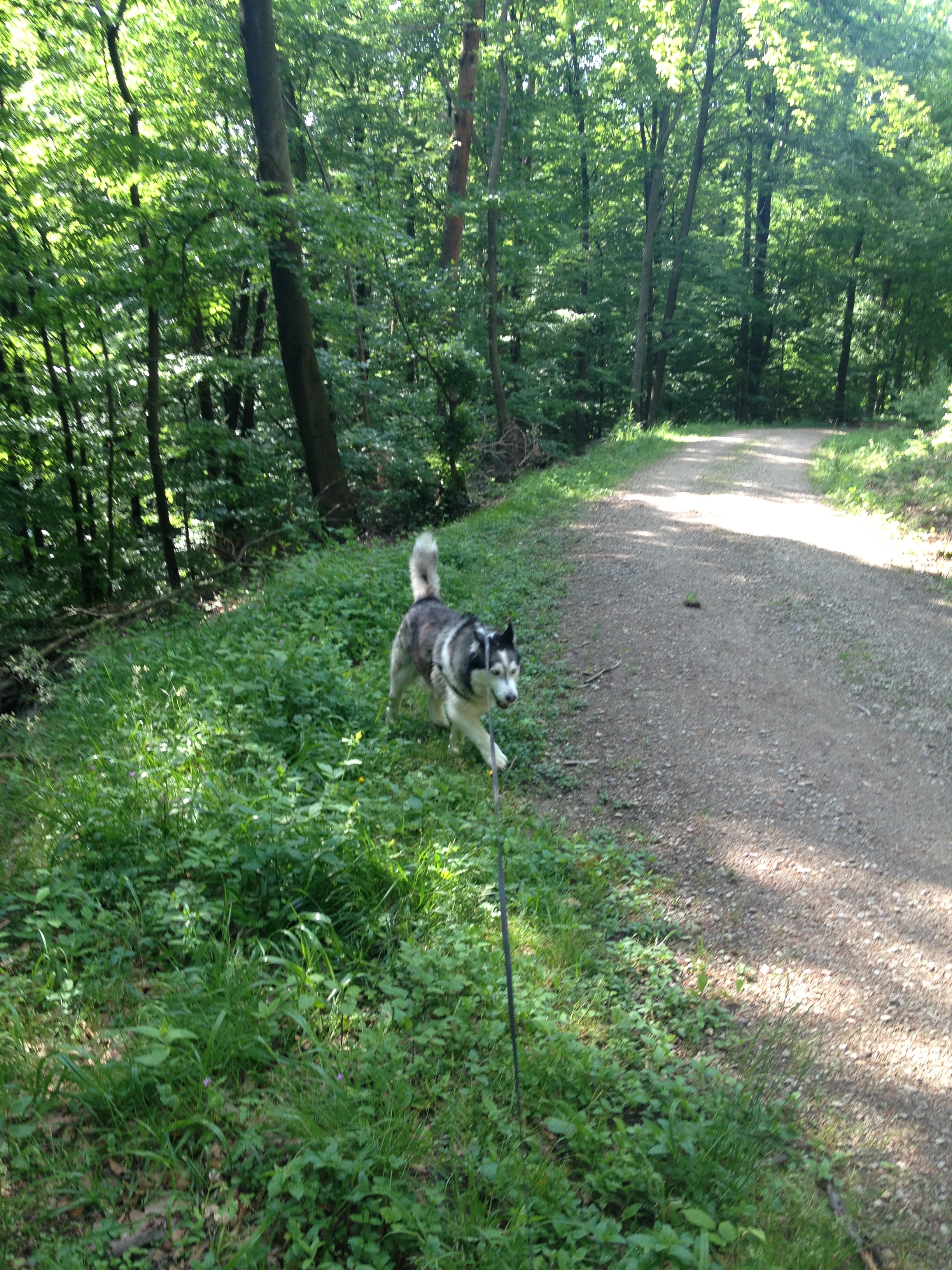 Bei diesem schönen Wetter war unser beider Laune natürlich auch etwas besser als sonst diesen Sommer. Trotz der guten Laune darf so ein pflichtbewusster Husky wie Luke natürlich nicht seine Pflichten vernachlässigen, so wurde jeder Busch einzeln beschnüffelt und fürs spätere wiederfinden markiert.