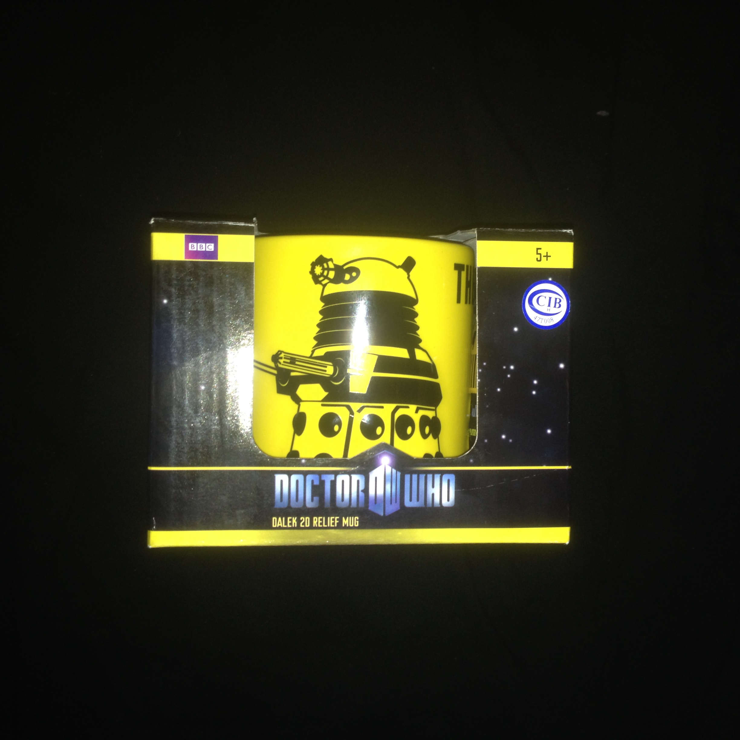 Da haben wir zu allererst mal die obligatorische Doctor Who Kaffeetasse mit einem netten Darlek Motiv.