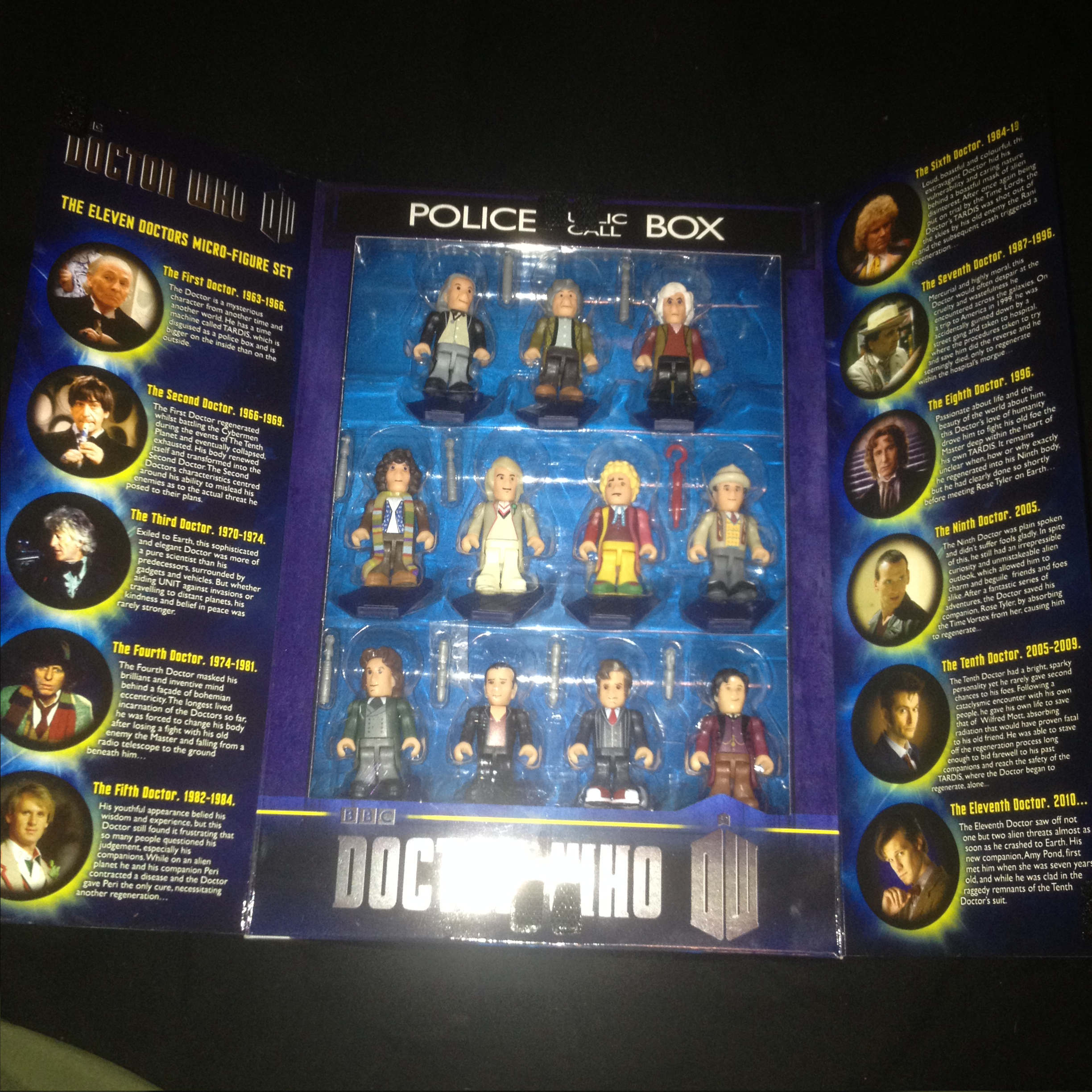 Wenn man die Box öffnet stellt man zwar fest das sie innen nicht unbedingt größer ist aber dafür alle 11 Versionen das Doktors enthält, inklusive des jeweiligen Sonic Screwdriver. Wahrscheinlich hat sich mein Wohltäter gedacht das mich diese 11 schon von der Ergreifung der Weltherrschaft abhalten werden. Mal sehen ob es was bringt, Sie bekommen zumindest einmal einen Ehrenplatz an meinem Rechner, direkt neben meinem Killerroboter.