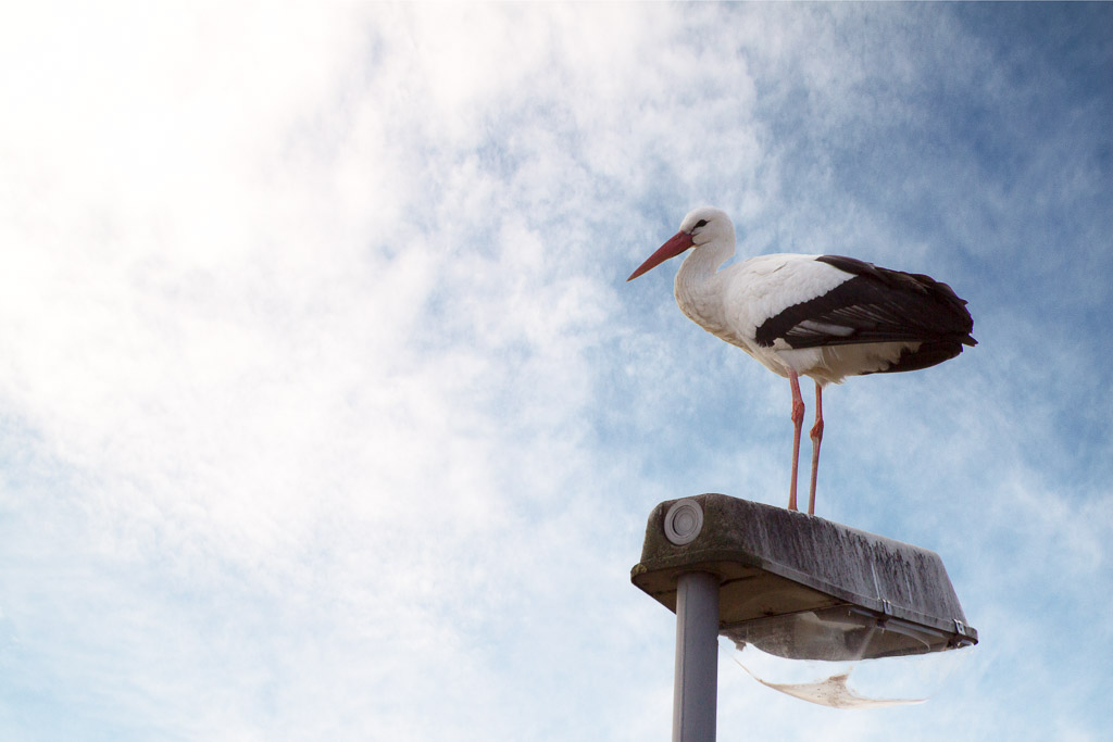 Die Rede ist natürlich von DEM Storch. Wie wir bereits aus diversen Dokumentarfilmen (meist in gezeichneter Form) wissen ist diese ständig besoffene Kreatur dafür verantwortlich die Babys auch sicher zu ihrem Zielort zu bringen. Hier sitzt er also schon einmal um sich seine zukünftigen Abwurfplätze ein wenig genauer anzuschauen. Netterweise wird er dabei aber hoffentlich noch eine Weile einen Bogen um mein Haus machen. Aber mal Scherz beiseite, ich suchte eigentlich nur nach einer passenden Gelegenheit dieses Bild loszuwerden 😉