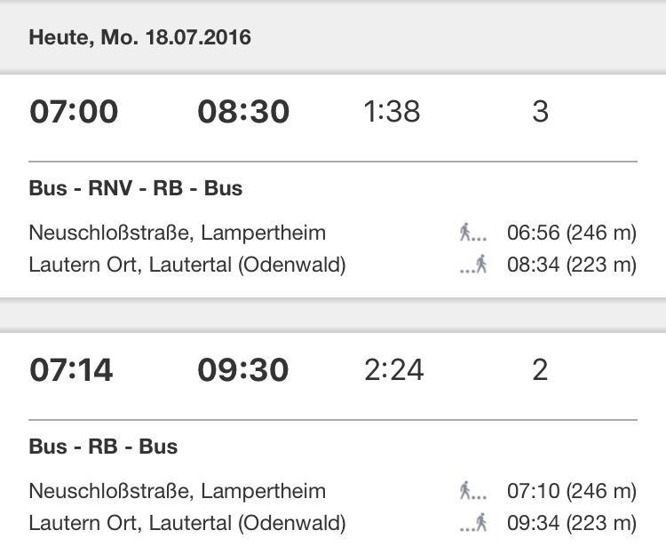 Mein Aktueller Fahrplan gestaltet sich Morgens so: